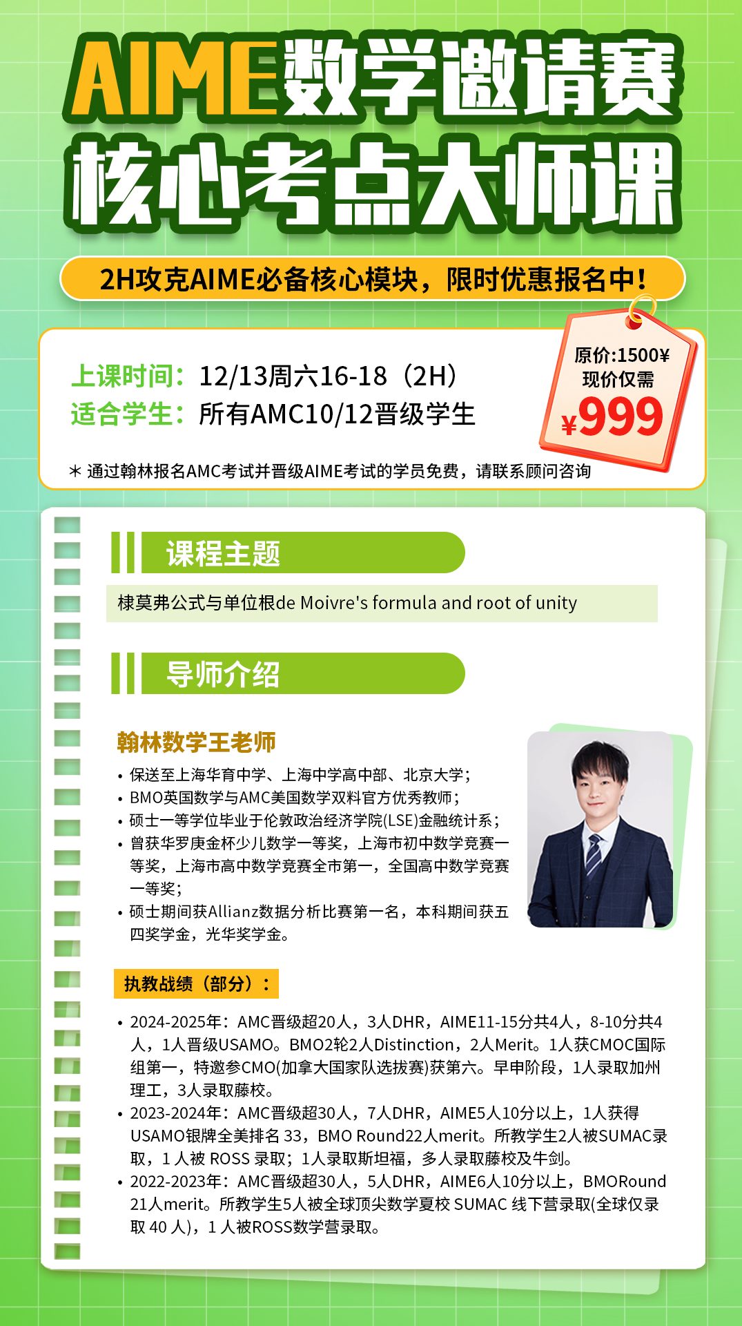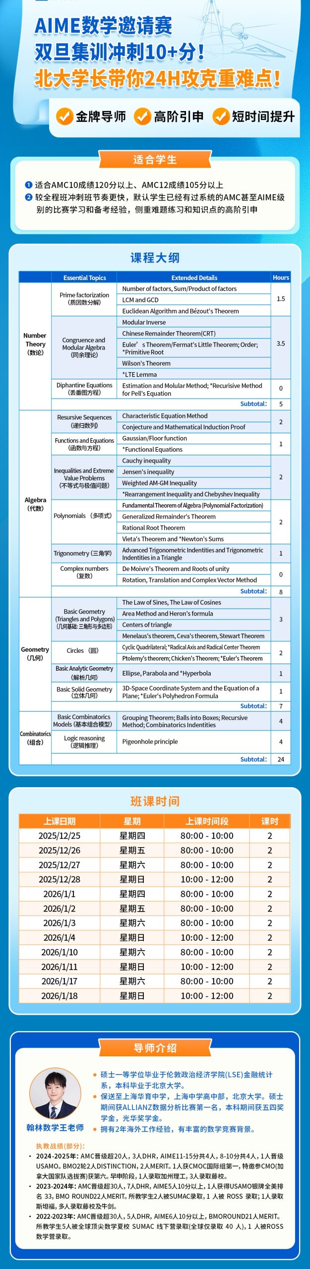 最新课程 AIME数学邀请赛双旦集训冲刺10+分!