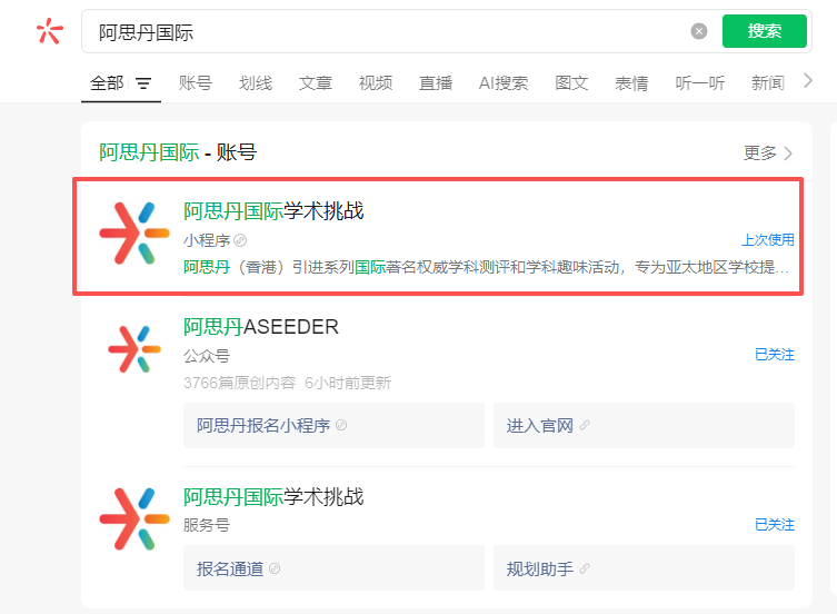 1、搜索阿思丹国际学术挑战